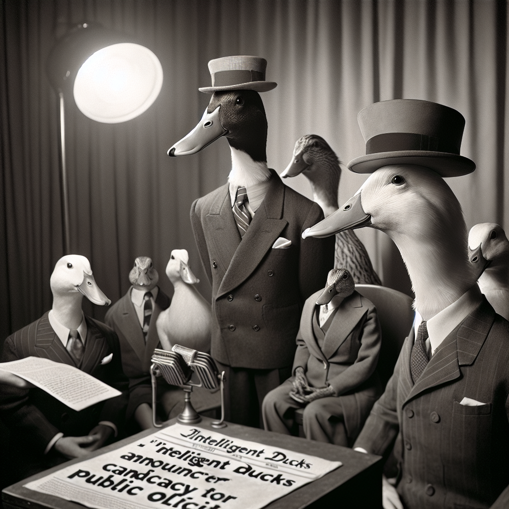 Dans une revendication bizarre, incroyable mais parfaitement sérieuse, la Communauté des Canards Sapiens Révolutionnaires (CCSR) a annoncé son intention de participer à la prochaine élection présidentielle. Dans un document de presse emplumé envoyé aux principaux médias du pays, les représentants de la CCSR déclarent leur intention de « remplacer le chahut des politiciens par le doux caquètement de la démocratie ».