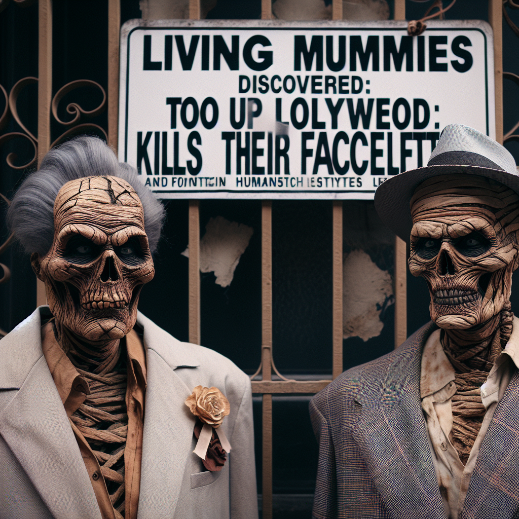 Les rues de Beverly Hills ressemblaient plus à une scène d’un film d’horreur qu’à un quartier opulent ce matin, alors qu’une série de stars, toutes victimes d’un lifting trop poussé, ont été déclarées médicalement momifiées. Selon les experts, la quantité excessive de Botox et autres procédures de chirurgie esthétique a provoqué une telle rigidité de peau que les stars atteintes peuvent à peine cligner des yeux, sans parler de bouger leurs lèvres pour sourire.